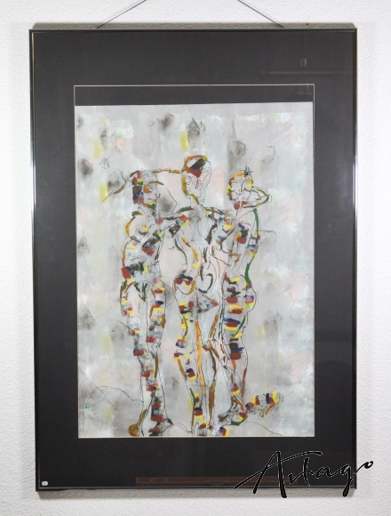Abstraktes Tempera Bild auf speziellem dünnen strukturierten Reispapier.
