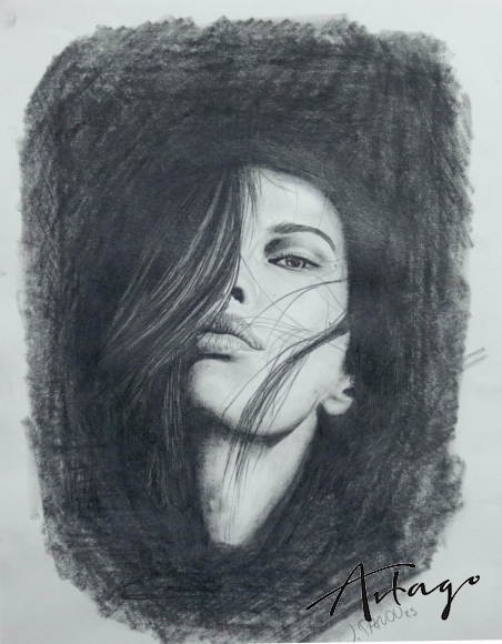 Die Kombination aus Dunkelheit und der strahlenden Schönheit der Frau erzeugt eine faszinierende Spannung. Die tiefe Dunkelheit dient nicht dazu, die Frau zu verbergen, sondern vielmehr, ihre Schönheit und Einzigartigkeit zu betonen. Ihr Blick strahlt eine Mischung aus Selbstbewusstsein und einer verborgenen Geschichte aus. Das Haar fällt in sanften Wellen über ihr Gesicht und verliert sich im Dunkel der Umgebung. Es verleiht ihrer Präsenz eine gewisse Wildheit, während sie gleichzeitig eine zeitlose Eleganz bewahrt.