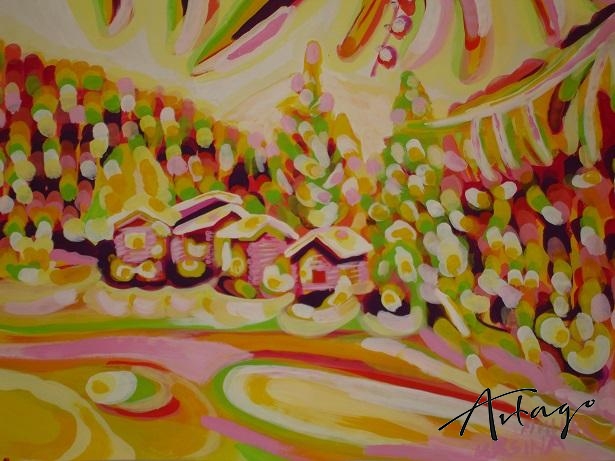 Walser Gaden in Davos - Monstein. ca. 50 x 65 cm breit. Gouache auf Papier, sollte aufgezogen werden, mein Rat.