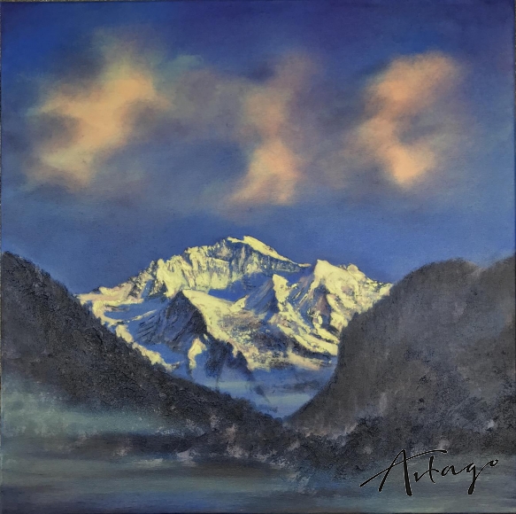 Das Gemälde war einmal in eine Gruppenausstellung im Berner Alpine Museum. Marjolein Bos ist Kunstmaler und Mitglied der GSBM Gilde Schweizer Bergmaler.