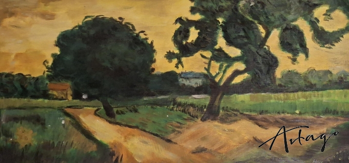 Dieses Bild orientiert sich am Werk von Van Gogh ,Paysage au Crépuscule' - Landschaft in der Abenddämmerung. Ich habe das Abendrot etwas akzentuiert und liebe dieses Bild, weil es eine so friedliche und ruhige Stimmung wiedergibt.