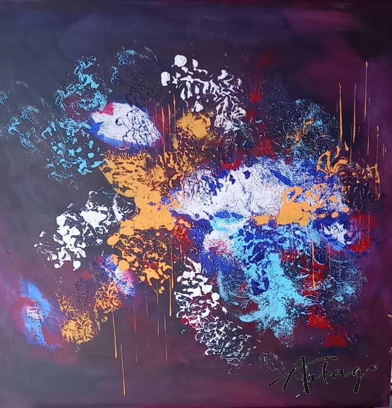 stimmige Farbkomposition. Malmesser-Technik. 60x60 cm